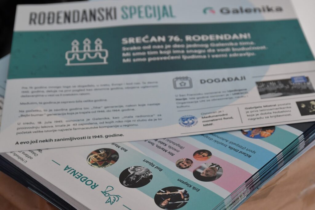 Specijalno rođendansko izdanje novina, muzika, topla kafa, dekoracija, personalizovani magneti, poklončići i veseli doček upotpunili su obeležavanje našeg 76. rođendana.
